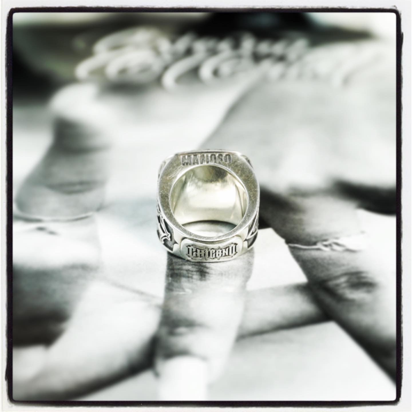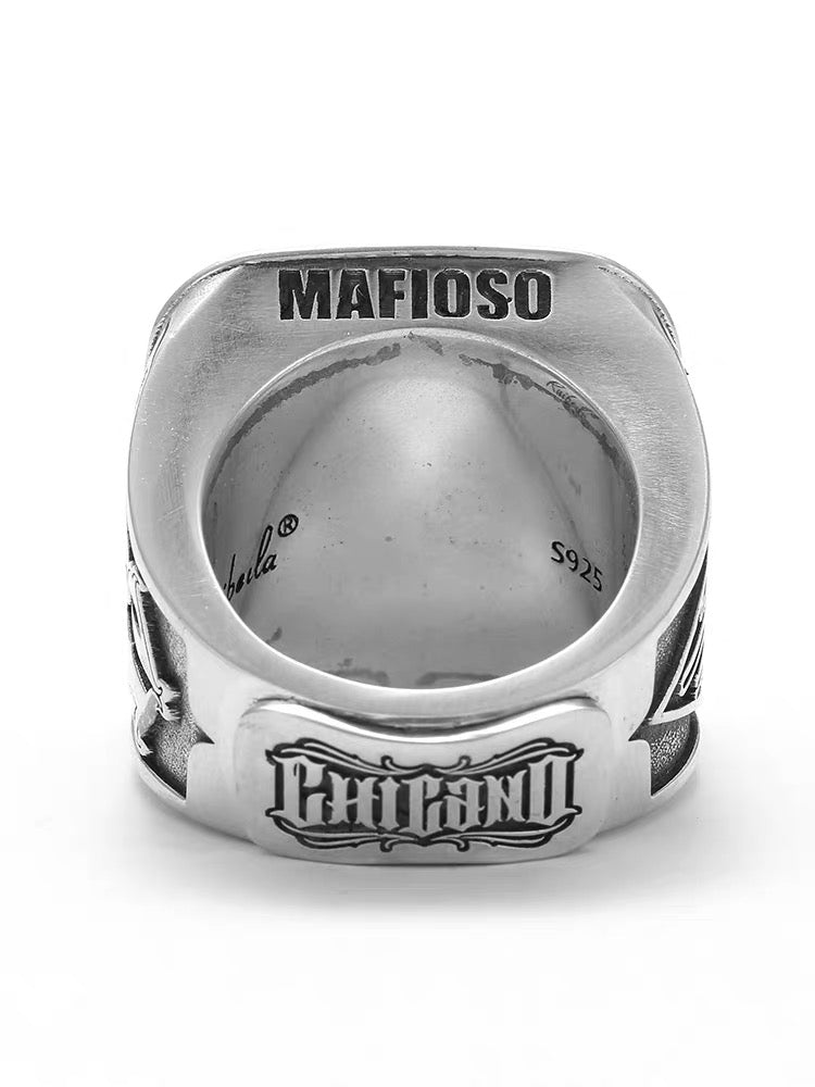 This ain’t no lightweight piece—38 grams of pure solid silver sittin’ heavy on your hand. Built like a lowrider on chrome, it shines with that barrio pride and biker soul. Thick, bold, and unforgiving, this ring speaks for itself—made for homies who ride solid and stay true.